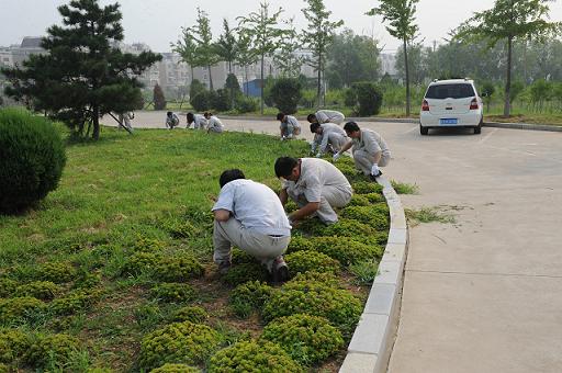 會后,一場黨員帶頭、員工共同參與的集體除草活動熱火朝天地開展起來。大家有的用手拔、用的用鐮刀割、有的用袋裝、用的用車推,忙的不亦樂乎。快者幫助慢者,年輕者幫助年長者,大家一邊勞動,一邊互相問候,其樂融融。表面的雜草連根拔起,死角區(qū)域進行了二次清除。烈日炎炎下,盡管很多人的臉上流下了晶瑩的汗滴,但他們依然在繼續(xù),沒有停歇。功夫不負有心人,經(jīng)過2個小時的辛勤勞動,責任區(qū)域內(nèi)的雜草、雜物被徹底清除。當大家回望整潔有序的草坪時,心中無比喜悅。